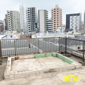 物置の解体は、屋上の防水を傷めないために土台残しになっております。